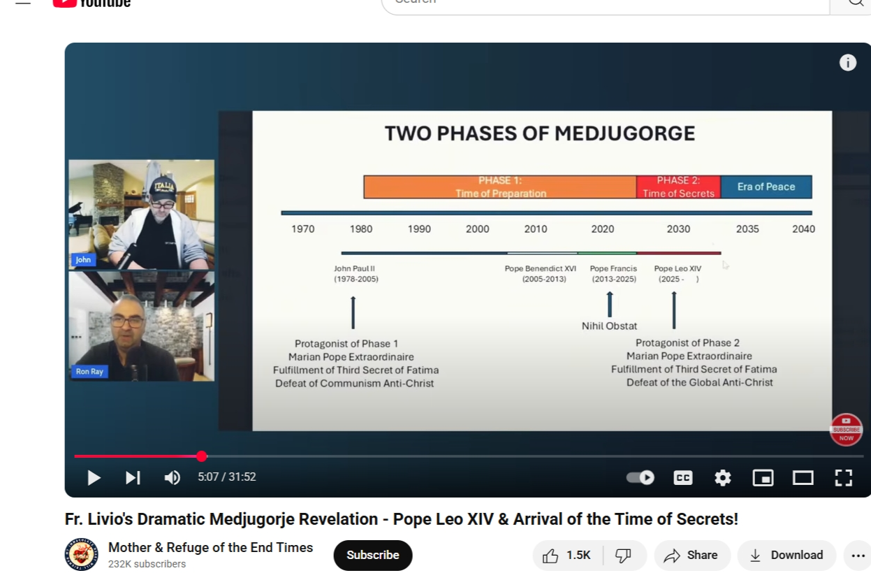 Here is another video coming up on Mother and Refuge of the End Times involving Father Livio and Medjugorje. This should be a great video to listen to and watch if it has more insights from Father Livio. https://www.youtube.com/watch?v=NXg8maIb8sw.